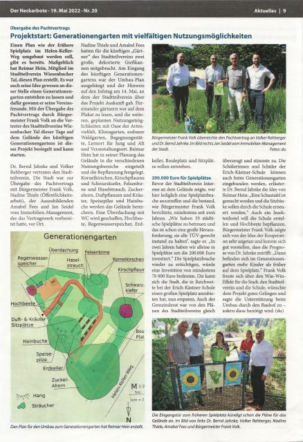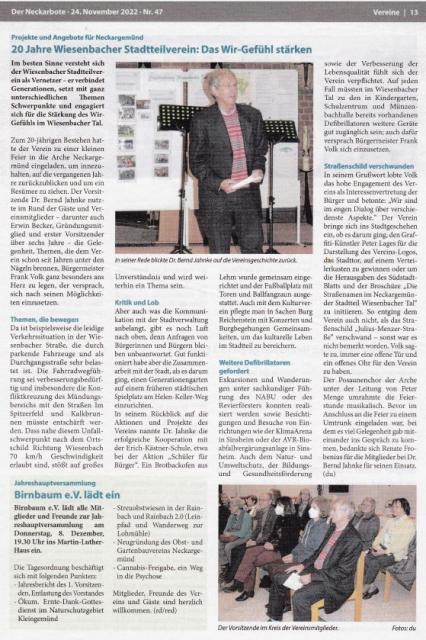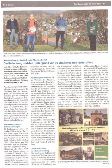 Stadtteilverein Wiesenbacher Tal e.V. mit neuem Vorsitzenden